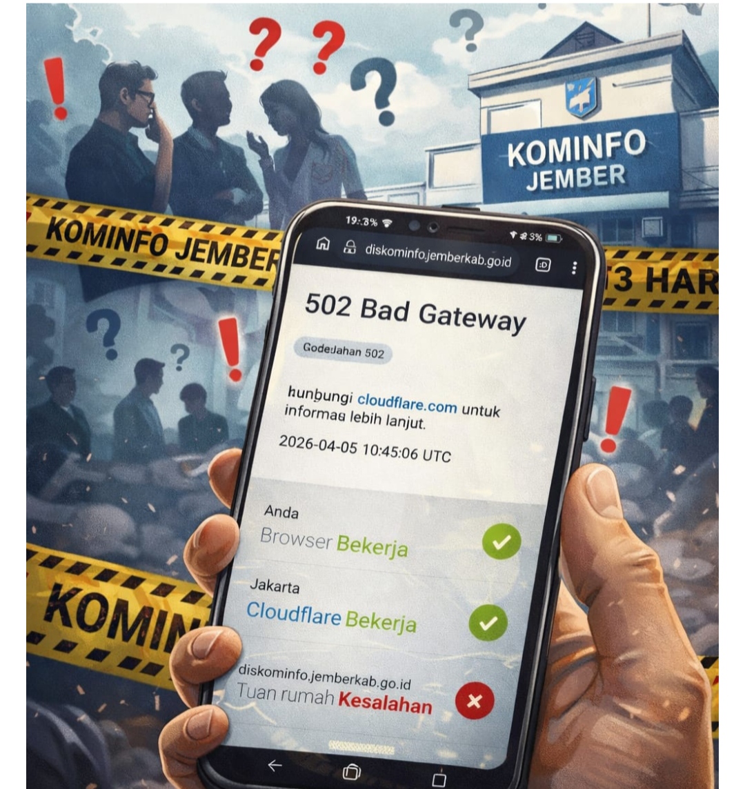 JEMBER — Kepercayaan publik terhadap layanan digital pemerintah kembali diuji. Website resmi milik Dinas Komunikasi dan Informatika Kabupaten Jember dilaporkan mengalami gangguan serius hingga tidak dapat diakses selama kurang lebih tiga hari berturut-turut.